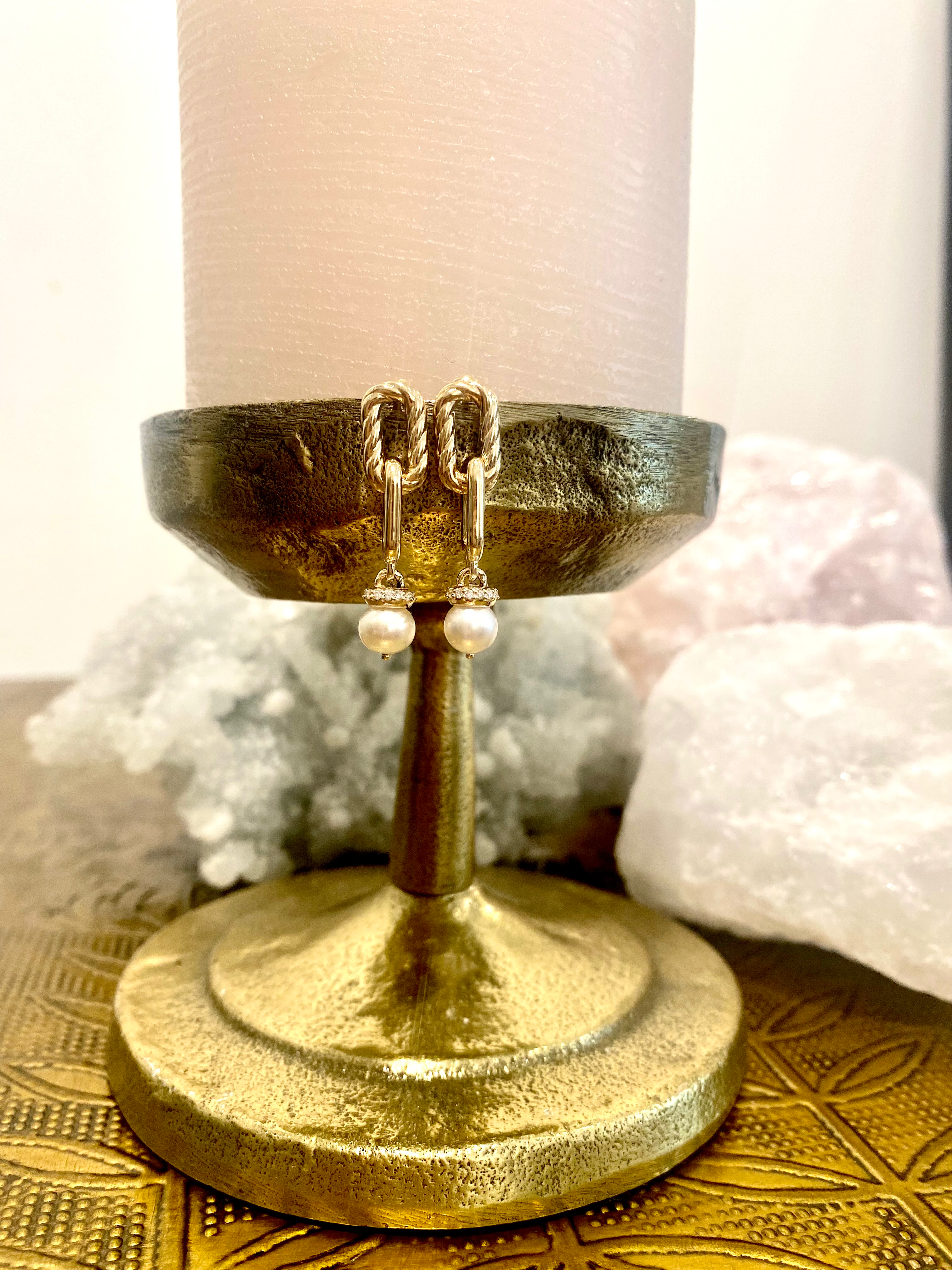 14kt Heirloom Pearl Diamond Custom Drop Earrings